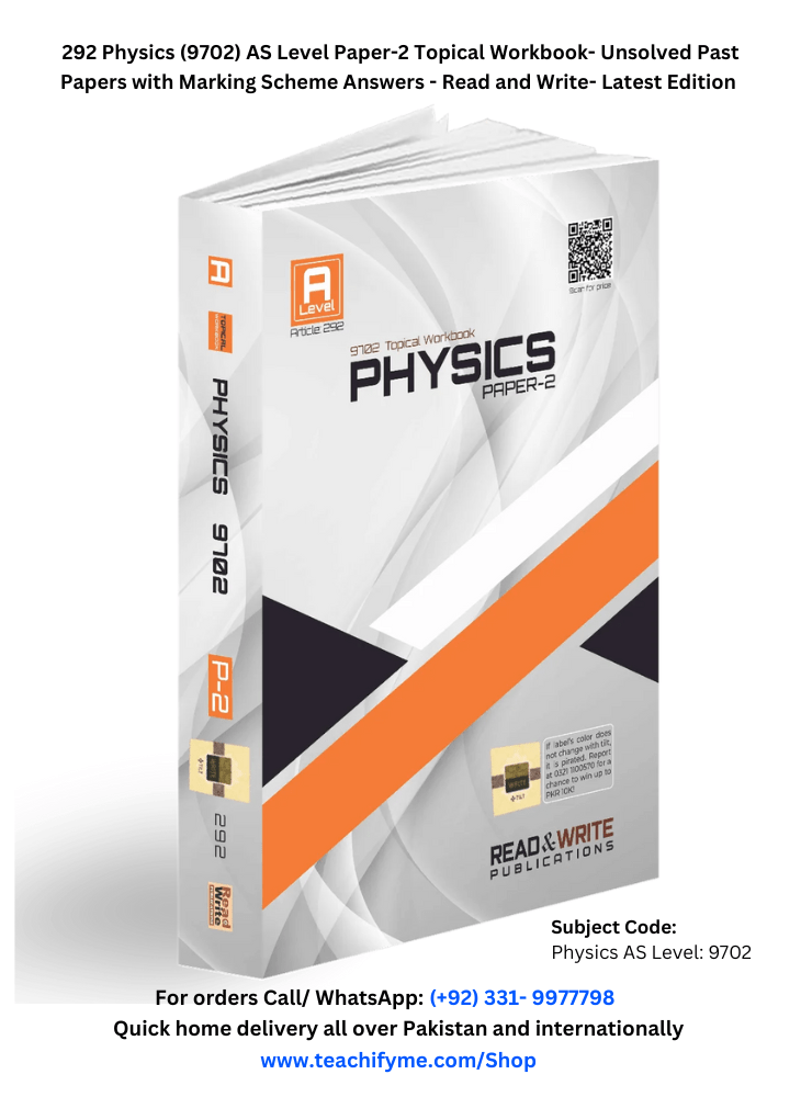 Physics A Level (9702) Paper 2 Topical workbook- 292 Read and Write contains Unsolved past papers with mark schemes classified to subtopics. writing space for solutions is given with each question for practice. Latest 2025 Updated edition.